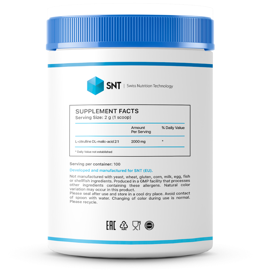 - Улучшенный кровоток - Citrulline Malate может улучшить кровоток и доставку кислорода в мышцы. Это может помочь уменьшить мышечную боль и улучшить время восстановления после упражнений.