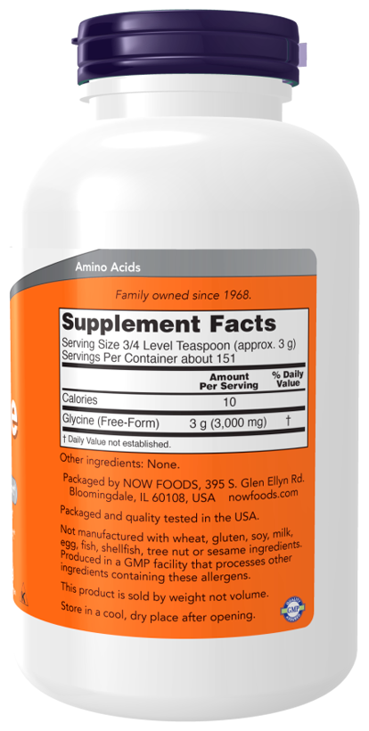 Глицин — это самая маленькая и простая аминокислота, что делает его универсальным для использования в широком спектре функций. Глицин необходим для производства глутатиона, ДНК, креатина, желчи, гемоглобина и большинства белков. Он также способствует накоплению гликогена, тем самым делая глюкозу доступной для выработки энергии.* Глицин также действует как успокаивающий нейромедиатор в головном мозге, где он облегчает передачу нервных импульсов и важен для поддержания здорового режима сна.