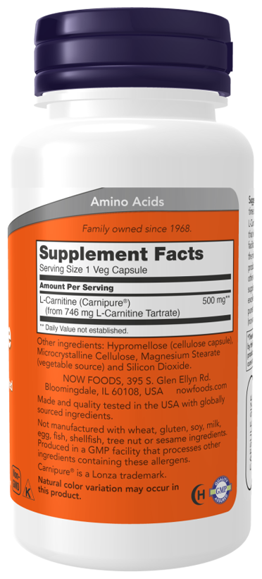 NOW L-Carnitine 500 mg, 60 капсул
