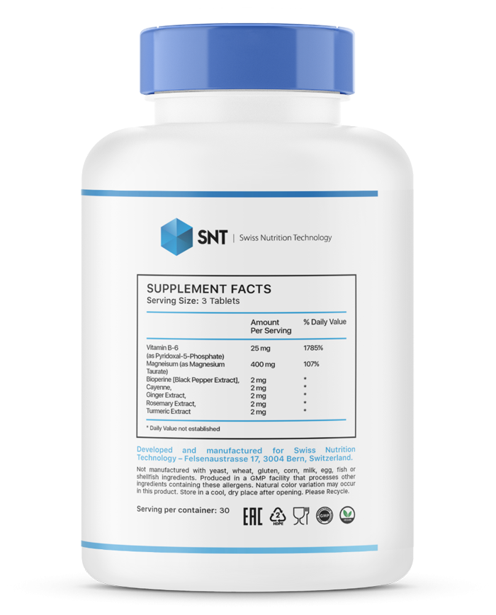 Таурат магния - хелатная форма магния и аминокислоты таурина. Вместе они являются отличными помощниками в снижении кровяного давления и оказывают пользу для сердца.Magnesium Taurate разработан с соблюдением всех стандартов качества. Добавка состоит не только из этих двух полезных компонентов,но и включает в себя другие важные витамины и микроэлементы, такие, как: витамин В-6, экстракт черного перца, паприка, корень имбиря, экстракт розмарина и куркумин, которые в комплексе положительно влияют на весь организм. Магний таурат обеспечивает защитные функции мозгу, сердцу, глазам и даже мышцам. Этот комплекс помогает предотвратить аритмию и образование тромбов.