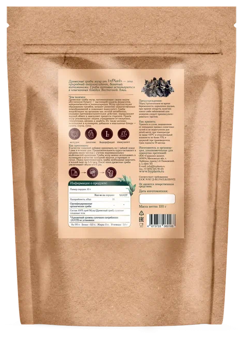 Муэр от ByPlants — это настоящий грибной деликатес, который подходит для здорового и диетического питания. Является самым распространенным грибом восточных блюд.