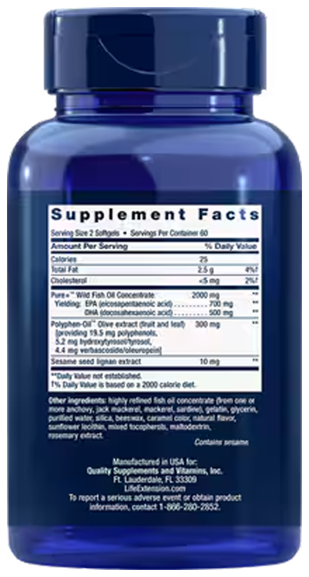 Life Extension Super Omega-3 EPA/DHA Fish Oil, Sesame Lignans & Olive Extract
