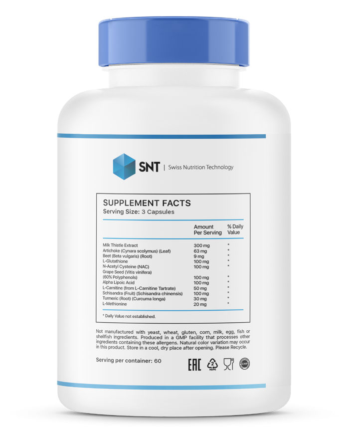 Liver Support - комплекс с уникальным составом, который нормализует работу печени и помогает выводить токсины из организма. NAC и метионин участвуют в образовании глутатиона - одного из самых сильных антиоксидантов организма. L-Карнитин необходим для переноса жирных кислот, а альфа-липоевая кислота - для здорового энергетического обмена в клетках. Также в комплексе содержится целый ряд растительных экстрактов, участвующих в регулировании работы печени.