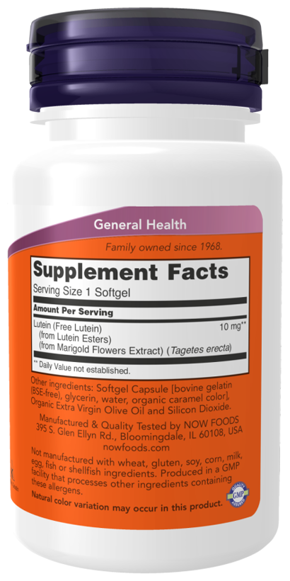 NOW Lutein 10 mg, 60 капсул