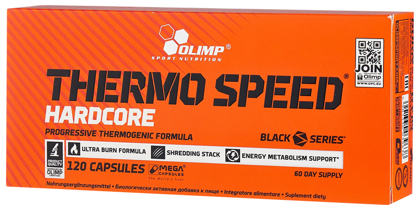 Olimp Thermo Speed Hardcore Caps - мощный, эффективный, безопасный жиросжигатель. Это улучшенная формула, в которой компоненты присутствуют в двух смесях с разными действиями. Применение продукта позволяет обрести фигуру своей мечты, избавиться от лишнего веса без вреда для организма.